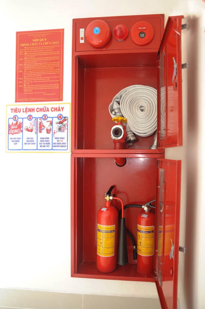 ✅ Trang bị bình chữa cháy xách tay, mặt nạ lọc độc, đèn chỉ dẫn thoát nạn.