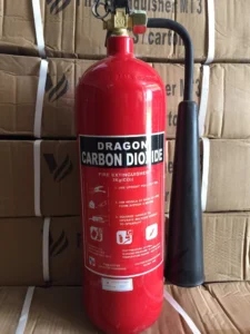 – Trong bình chữa cháy có nén khí CO2 với áp Suất cao. Khi chúng ta mở chốt xịt do có sự chênh lệch về áp xuất CO2 trong bình thoát ra loa ngoài chuyển thành tuyết khí lạnh lên đến -76 độC.